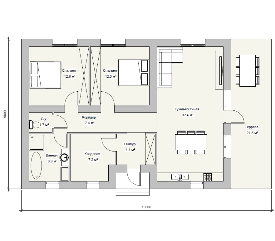Слева представлен вариант с расстановкой мебели и точными габаритами Справа — с рекомендованной нашим дизайнером расстановкой.